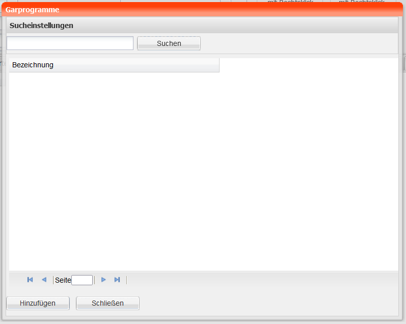 Die Suche in den Garprogrammen startet durch einen Klick auf die Schaltfläche "Suchen". Durch Eingabe eines Texts im Eingabefeld kann das Suchergebnis eingeschränkt werden.
