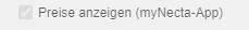 Damit dem Besteller in der APP Preise angezeigt werden, muss im Menüplanprofil des Kunden der Schalter "Preise anzeigen (mynecta-APP)" gesetzt sein.