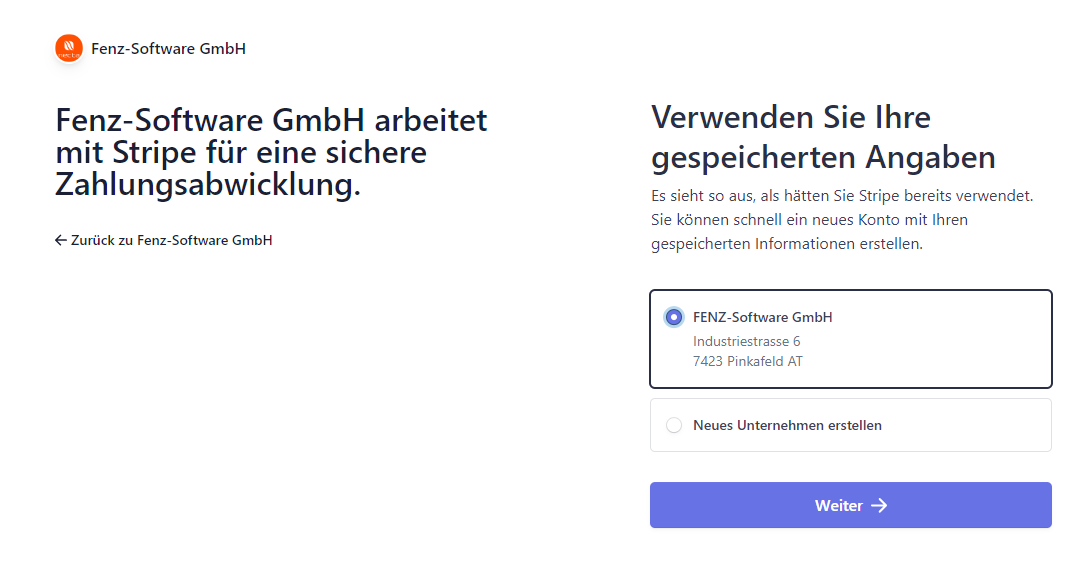 Es erfolgt dann die Weiterleitung zu Stripe, wo Sie die tatsächliche Registrierung vornehmen können.