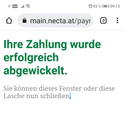 Als Bestätigung für eine erfolgreiche Beendigung des Bezahlvorgangs wird der Anwender wieder auf einenecta-Seite zurückgeleitet: