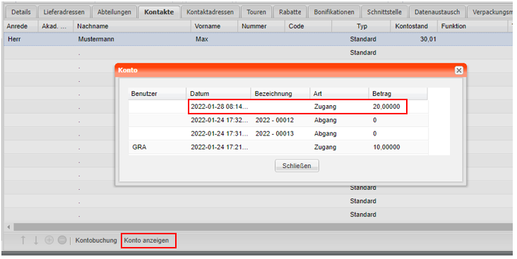 Der neue Kontostand muss hier in necta manuell nachgepflegt werden.