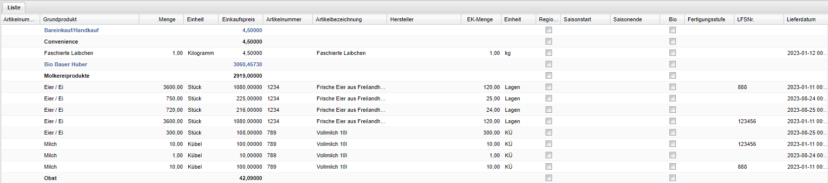 Ist der Schalter gesetzt wurde der Lieferantenartikel als Bio gekennzeichnet. |