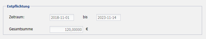 Gesamtsumme Anzeige der Gesamtsumme an Entpflichtungskosten.