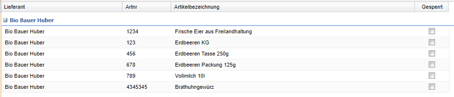 Gesperrt Auswahl, ob der Lieferantenartikel für die Bestellung gesperrt werden soll.