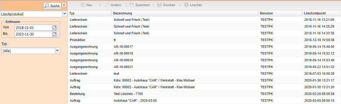 Benutzer Anzeige des Bearbeiters, der den Button "Löschen" betätigt hat.