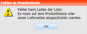 Bei der Suche muss auf eine Produktklasse oder einen Lieferanten eingeschränkt werden.\