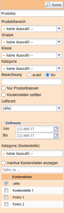 | Produktbereich | Auswahl eines Produktbereichs auf den eingeschränkt werden soll. |
