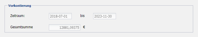 | Gesamtsumme | Anzeige der Gesamtsumme aller Rechnungen in diesem Zeitraum. |
