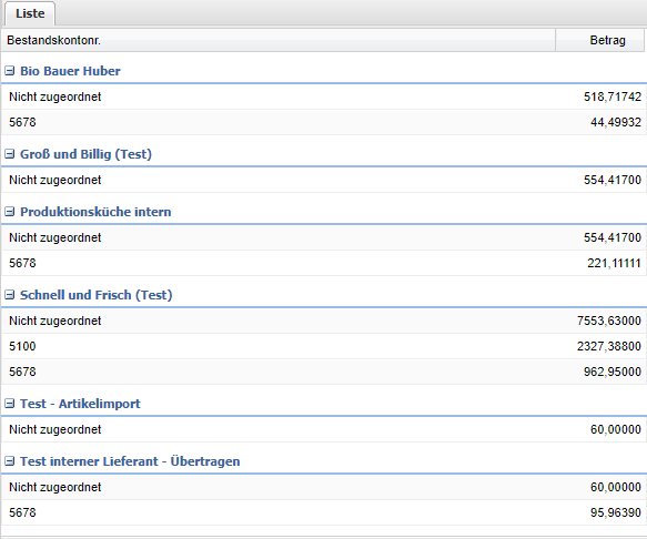 Betrag Anzeige des Betrags aus den Eingangsrechnungen je Bestandskontonummer.