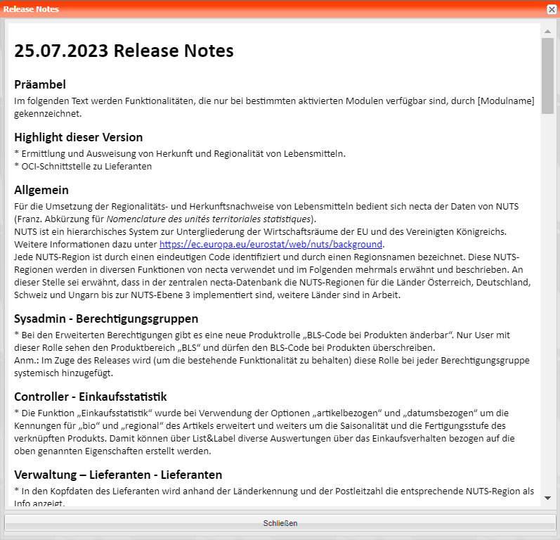 Nach jedem Release werden die neuen Funktionalitäten im Rahmen der Release-Notes beim ersten Login angezeigt. An dieser Stelle sind diese und auch die archivierten Release-Notes jederzeit aufrufbar.