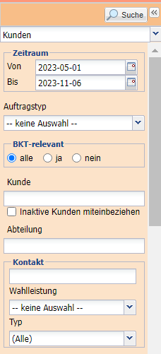 | Kunde | Eingabe einer Kundenbezeichnung nach der gesucht werden soll |