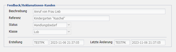 | Referenz | Anzeige des zuvor ausgewählten Kunden. |