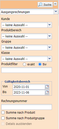 Details ausblenden Je nach Vorauswahl werden nur die summierten Produkte (Summe nach Produkt) bzw. die summierten Produktgruppen in der Liste dargestellt.