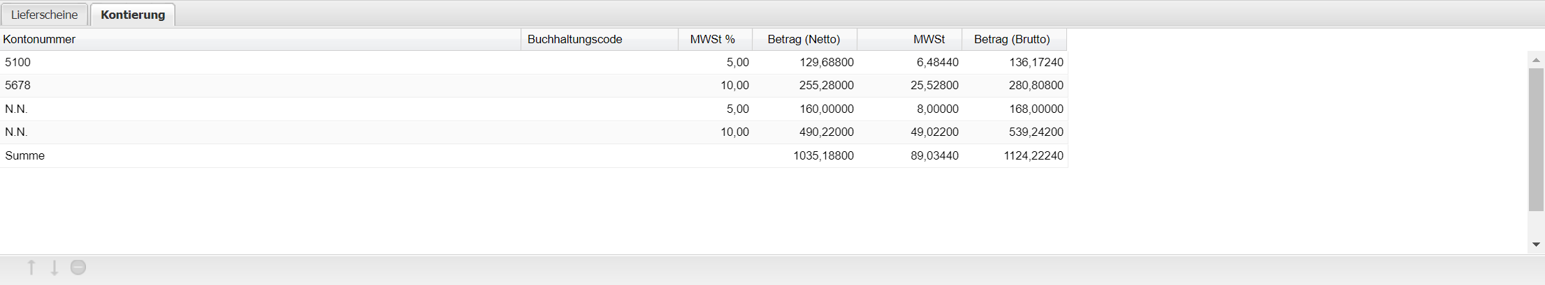 Betrag (Brutto) Anzeige des Bruttobetrags je Kontonummer.