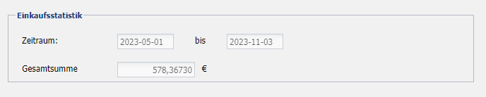Gesamtsumme Anzeige der Gesamtsumme der Warenzugänge in diesem Zeitraum.