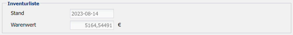 Stand Anzeige des ausgewählten Inventurstichtags.