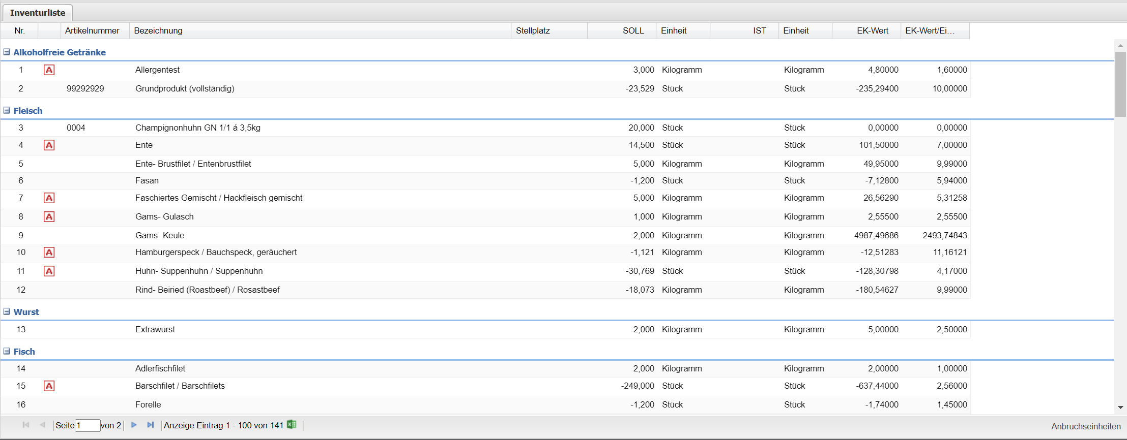 Anzeige der berechneten SOLL-Lagerwerte zum Stichtag. |