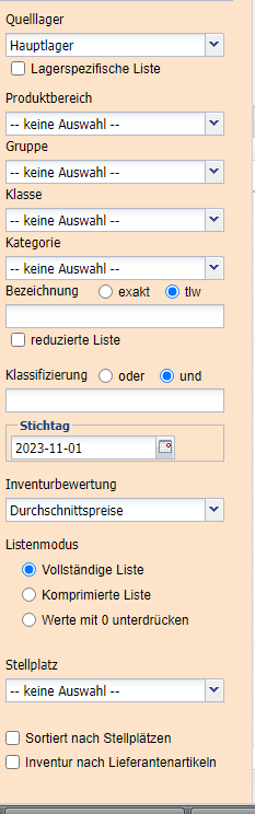 Quelllager Auswahl des Lagers in welchem die Inventur durchgeführt werden soll.