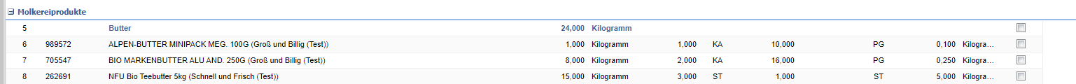 Durch Setzen des Schalters werden zu jedem Produkt auch die zugeordneten Lieferantenartikel angezeigt und eine Eingabe je Lieferantenartikel ist möglich. In der Produktzeile werden alle Eingaben zusammengefasst und auch gespeichert.
