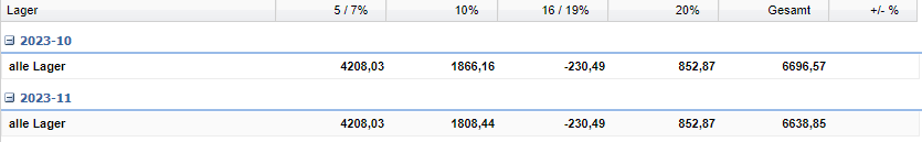 | Gesamt | Anzeige des Gesamtwarenwerts je Lager. |