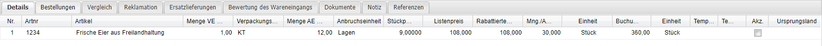 | Artikelnummer | Anzeige der Artikelnummer des Einkaufsprodukt. |