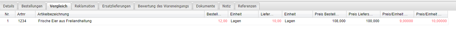| Vergleich erstellen | Durch Betätigen de Buttons werden Mengen und Preise von Bestellung und Lieferschein gegenübergestellt. |