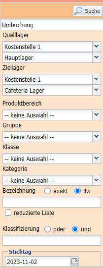 Quelllager Auswahl des Lagers von welchem Produkte abgebucht werden sollen.
