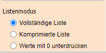 Werte mit 0 unterdrücken Produkte mit einem Wert von 0 werden in der Liste nicht angezeigt.