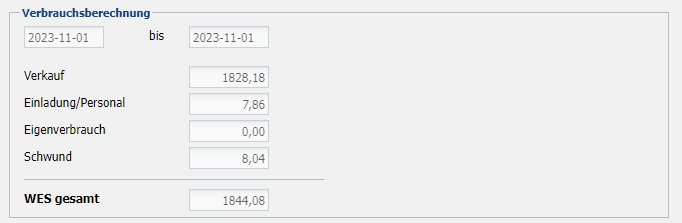 Verkauf Anzeige des berechneten Verbrauchs aus dem Verkauf.