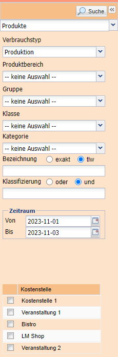 Kostenstelle Auswahl der Kostenstellen, welche in der Verbrauchsermittlung berücksichtigt werden sollen.