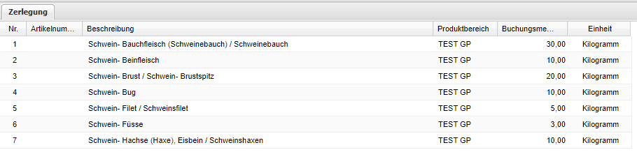 Buchungsmenge Anzeige bzw. Überschreiben der tatsächlich aus der Zerlegung resultierenden Mengen.