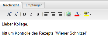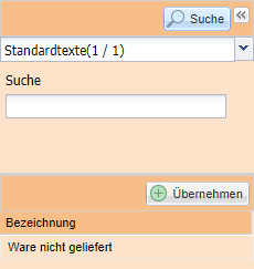 | Textfeld | Hinterlegen eines Nachrichtentextes. Über die Suchfunktion kann nach bereits angelegten Standartexten gesucht und diese per Doppelklick oder Übernehmen-Button in das Textfeld eingefügt werden. |