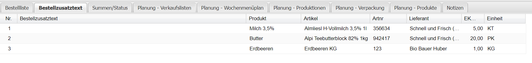 | Bestellzusatztext | Anzeige bzw. Hinterlegen eines Bestellzusatztextes je Produkt. |
