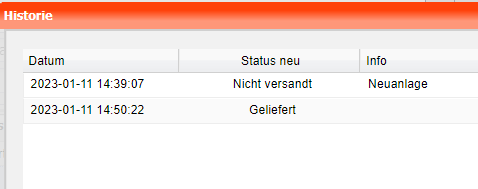 Geliefert Durch Betätigen des Buttons kann der Status manuell auf Geliefert gesetzt werden.