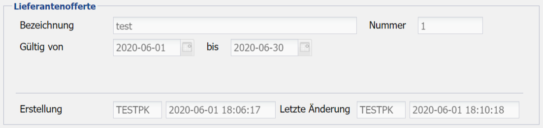 | Bezeichnung | Hinterlegen einer Bezeichnung für das Lieferantenoffert. |