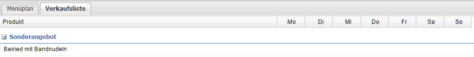 Produkt Anzeige der gültigen Verkaufslisten und Produkte für den ausgewählten Kunden.