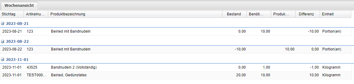 Differenz = Berechnete Menge - Bestand bzw. falls manuell eine Produktionsmenge erfasst wurde dann Produktionsmenge - Bestand. |
