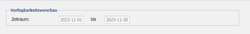 Anzeige des zuvor ausgewählten Zeitraums für die Verfügbarkeitsvorschau.