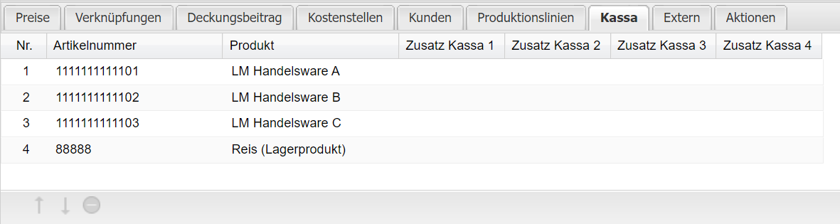 Zusatz Kassa * Anzeige bzw. Hinterlegen von Kassenzusätzen.