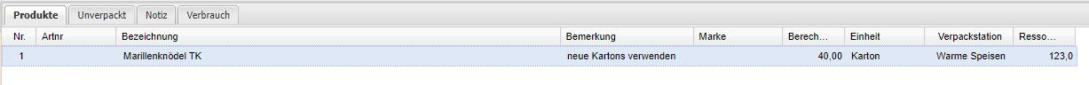 | Einheit | Anzeige der Kalkulationseinheit. |