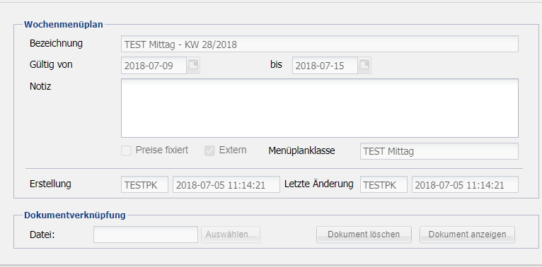 Bezeichnung Hinterlegen einer Menüplanbezeichnung bzw. automatische Generieren lassen der Bezeichnung (Menüplanklasse + Kalenderwoche + Jahr)