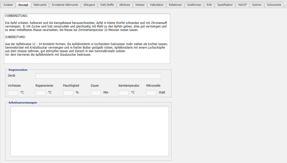 Hinterlegen einer Rezeptur, sowie Arbeitsanweisungen für diverse (Etiketten)-Drucke.