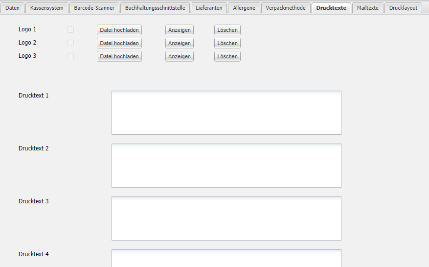 Logo 1-3 Je Kostenstelle können drei Logos hochgeladen werden. Diese finden üblicherweise in List and Label Layouts Verwendung.