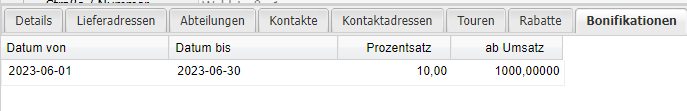 | ab Umsatz | Ausschalggebender Wert, ab welchem eine Bonifikation gewährt wird. |