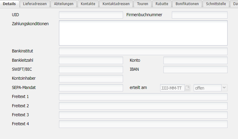 Diese Felder werden üblicherweise nur befüllt, wenn Ausgangsrechnungen an Kunden per Standarddruck oder nectaReports erstellt werden.