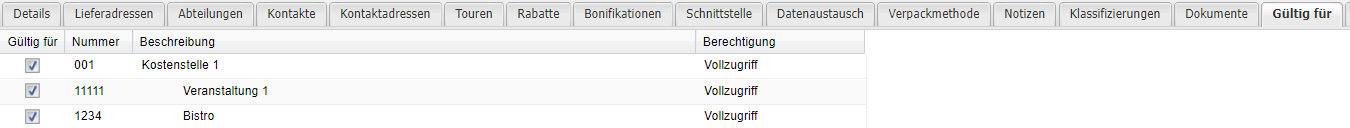 Gültig für Info An dieser Stelle kann entschieden werden welche Subkostenstellen diesen Kunden sehen bzw. bearbeiten dürfen.