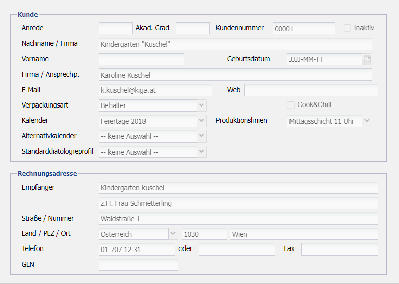 | Inaktiv | Kunde wird inaktiv gesetzt z.B. für Menüvorbestellung, Verpflegsstandsmeldung, usw. |