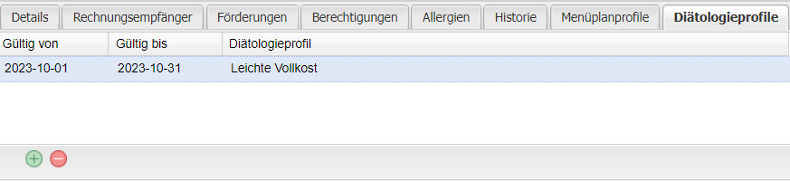 Hinzufügen von Diätologieprofilen per "+"-Button