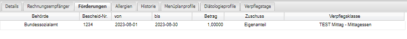 Verpflegsklasse Auswahl für welche Verpflegsklasse (z.B. Frühstück, Mittag, Nachmittagsjause und Abend) der Zuschuss gewährt wurde.
