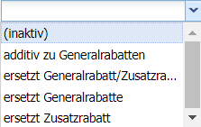 | Rabattart | Auswahl aus: |